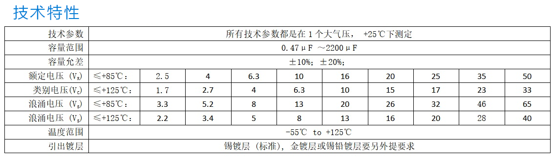 | ESR最大值 | 15 Ohm @ 100KHz | 温度特性 | -55℃ ~ 125℃ |